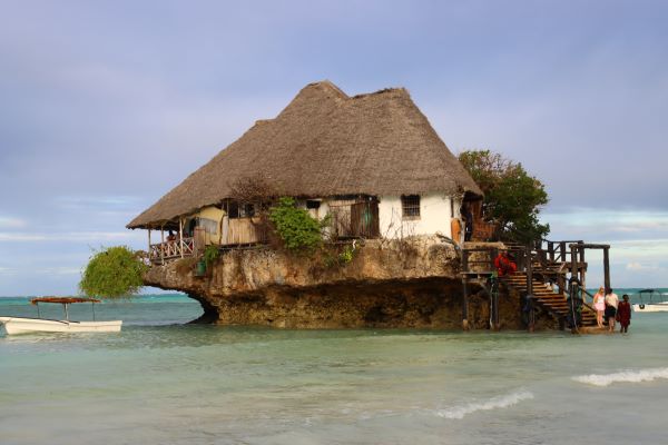 Ein ganz besonderes Erlebnis war der Besuch im berühmten Restaurant „The Rock“, das spektakulär auf einem Felsen im Meer steht. Bei Ebbe kann man zu Fuß hinüberlaufen, bei Flut wird man mit einem kleinen Boot übersetzt. Der Besuch ist Pflicht, wenn man auf Sansibar ist, allein die Lage ist atemberaubend! Beim Essen sollte man die Erwartungen allerdings nicht zu hoch ansetzen: Es ist zwar lecker und frisch, aber eher teuer und die Portionen könnten etwas größer sein. Trotzdem, für das Erlebnis und den Ausblick lohnt es sich allemal.