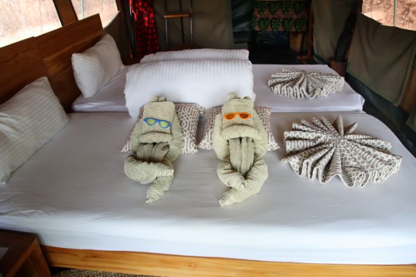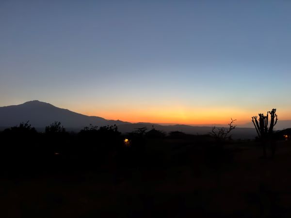 Unsere Unterkunft war eine authentische Massai Lodge, idyllisch gelegen zwischen dem Mount Meru und dem Kilimandscharo. Von dort aus eröffneten sich atemberaubende Ausblicke auf beide Berge, besonders in den frühen Morgenstunden, wenn die Sonne die Savanne in goldenes Licht taucht.