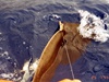 Mein großer Traum war schon immer das Big Game Fischen. Einmal einen Schwertträger fangen, wer träumt schon nicht davon. Doch wo kann man das ohne gleich amerikanische Charterbootpreise von ca. 1000 US Dollar pro Ausfahrt zu bezahlen? Nun las ich in der Fachpresse, dass man auf La Palma diesen Traum ausleben kann. Auch von großen Rochen war die Rede und ich meine große Rochen. Also auf nach La Palma. Ich buchte bei einem deutschen Reiseveranstalter alles komplett. 7 Tage incl. Flug, Leihwagen und 4 Tage Vollcharter einer Big Game Yacht. Auf La Palma angekommen bereitete uns das auffinden der Finca arge Probleme, da die Wegbeschreibung sehr mangelhaft war. Wir sollten ein weißes Haus mit rotem Dach finden. Das haben wir auch. Auf La Palma ist jedes zweite Haus weiß und hat ein rotes Dach. Aber egal. Nach einer Odyssee über die Insel fanden wir unsere Finca doch noch. Dort begrüßte uns Bernhard. Der Eigentümer von Finca und Yacht und unser Skipper für 4 Ausfahrten. Wir erarbeiteten auch gleich einen Schlachtplan für die nächste Woche. Schleppfischen war angesagt. Die Jagd auf einen Marlin oder Sail erwies sich allerdings schwieriger als erwartet. Wir schleppten Tag ein Tag aus. Ich glaube ich kenne jeden m2 Wasser um La Palma persönlich. Bis auf einen Bonito und eine kleine Goldmakrele (Dorado), der übrigens sehr lecker schmeckt, konnten wir nichts auf die Planken legen. Wir machten eine kleine Angelpause um etwas Kultur zu machen und verabredeten uns auf 2 Tage später. Bernhard gab mir noch den Tipp, probier’s mal im Hafen auf Rochen. Nach dem Kulturprogramm incl. Inselrundfahrt saß ich am Nachmittag bewaffnet mit einer 50 Lbs. Shimano Meeresrute, einer 35 kg tragenden geflochtenen Schnur auf einer Biomaster Special Rolle im Hafen. Als Köder habe ich Sardinen aufgezogen. Es dauerte keine 15 Minuten, dann begann die Schnur ganz leicht von der Rolle zu laufen. Ich gab ca. 5 Meter Schnur und setzte einen kräftigen Anschlag. Was dann begann übertraf meinen kühnsten Erwartungen. Was da am anderen Ende zog konnte ich mir nicht vorstellen. Ich musste mich hinsetzen und mit beider Füßen an einem Boller abstützen, sonst wäre ich baden gegangen. Dann wurde mir gezeigt wo die Tragkraft der Schnur endet. Ohne wirklich jemals eine Chance gehabt zu haben riss ich mir 3-mal alles ab. In einem Hafen mit vielen ankernden Booten hat man eben nicht den Platz, wie auf offener See. Endlich hatte ich ein kleineres Exemplar an der Angel und ich schaffte es auch ihn zu landen. Es war ein kleiner Glattrochen keine 10 kg schwer. Ich schaffte es immerhin noch ein großes Tier bis an die Hafenmauer zu ziehen, bevor es in eine Ankerleine schwamm. Der nächste Tag war wieder mit Kultur ausgefüllt. Vulkane anschauen! Tags darauf hatten wir die letzte Ausfahrt mit Bernhard. Er begrüßte uns schon am Boot. Heute fahren wir auf Rochen. Er fuhr ca. 1 Meile vor den Hafen, verankerte das Boot und versenkte einen riesigen Sack mit Rubby Dubby. Jetzt haben wir eine halbe Stunde Zeit sagte er und machte die Ruten fertig. 130 Lbs. Shimano Tiagra Ausrüstung. Auch hatte er noch einen zweiten Mann mitgebracht. Warum erfuhr ich eine halbe Stunde später. Denn da saß ich schon im Kampfstuhl und mir wurden die Arme lang gezogen. Ich zog einen Glattrochen nach dem anderen nach oben. Alle in der 50 kg Klasse. Eine Wahnsinns Anstrengung. Meine Frau sollte auch mal in den Genuss kommen, mit den großen des Meeres zu kämpfen. Nach kurzer Zeit schrie sie nach Hilfe. Die großen haben gesiegt ich habe sie aus dem Kampfstuhl befreit. Nach unzähligen Fischen war der nächste doch ganz anders. Er kam sofort nach dem Biss an die Oberfläche und umkreiste das Boot. Mit anderen Worten, er machte richtig Unordnung, denn da war ja noch die Ankerleine und der Rubby Dubby Sack. Aber irgendwann hatten wir ihn an der Bordwand. Es war ein Adlerrochen von ca. 70 kg Gewicht. Bernhard sagte, das ist der erste dieser Art, der auf seinem, Boot gefangen wurde. Wir hatten zu dritt mächtig Mühe, um ihn schonend für ein Foto über die Bordwand zu bekommen. Dieser Tag war so richtig nach meinem Geschmack. Und schon waren die 3 erfolglosen Ausfahrten vergessen.