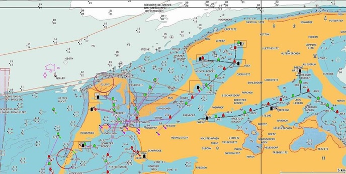 Also raus aus dem Hafen, langsam, denn die Pier war voller Heringsangler, ebenso die Hafeneinfahrt sowie der gesamte Strelasund.