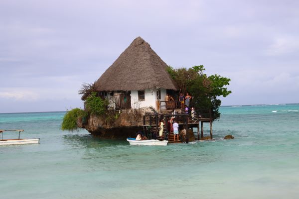 Ein ganz besonderes Erlebnis war der Besuch im berühmten Restaurant „The Rock“, das spektakulär auf einem Felsen im Meer steht. Bei Ebbe kann man zu Fuß hinüberlaufen, bei Flut wird man mit einem kleinen Boot übersetzt. Der Besuch ist Pflicht, wenn man auf Sansibar ist, allein die Lage ist atemberaubend! Beim Essen sollte man die Erwartungen allerdings nicht zu hoch ansetzen: Es ist zwar lecker und frisch, aber eher teuer und die Portionen könnten etwas größer sein. Trotzdem, für das Erlebnis und den Ausblick lohnt es sich allemal.