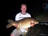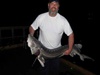 Anschließend machte ich erst mal Pause, denn mittlerweile brannten meine Arme. So gegen 12 Uhr in der Nacht tänzelte mein Schwimmer wieder. Anschlag, Rute krumm, dann lief die Rolle. Peter musste schon wieder kommenJ. Nach über einer Std. sah ich den Fisch zum ersten Mal, Transmontanus……Riesengroß…….. ich musste wieder ins Wasser. Nach dem Haken lösen, wollte ich mich mit dem Fisch in Position bringen um ein Bild zu machen. Doch der hatte was dagegen, er schlug wild um sich, mir letztlich mit der Schwanzflosse ins Gesicht und verschwand unter den Steg. Geil Geil Geil, laut Andreas hat der Fisch eine Größe von 2,15m und geschätzte 90-100kg.